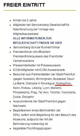 尽管森根堡博士、森根堡学会与法兰克福大学的历史关系深远,学生持法兰克福大学歌德卡仍不能免费入馆。但来自法兰克福伙伴城市的居民,则可以凭身份证明文件免费入馆参观,其中就包括来自中国广州的所有市民。